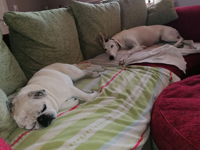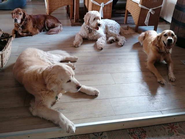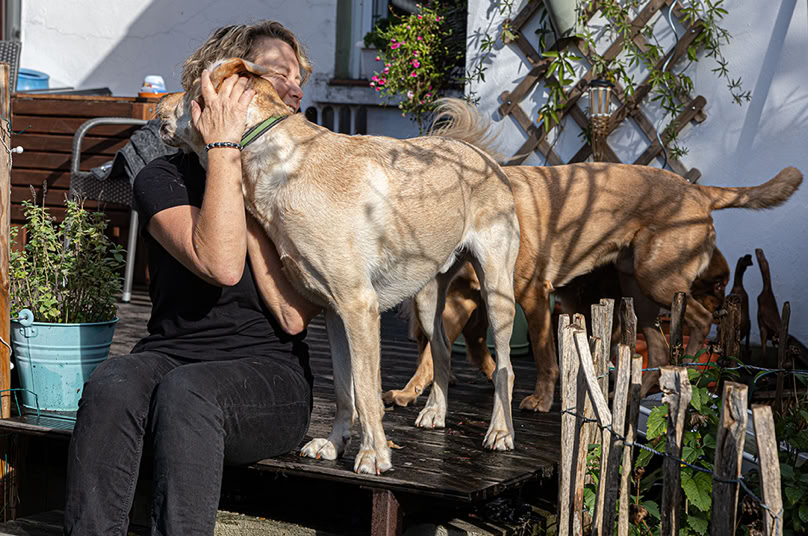 Die Hunde wohnen in einer Gruppe von bis zu 6 Tieren mit mir im Haus.